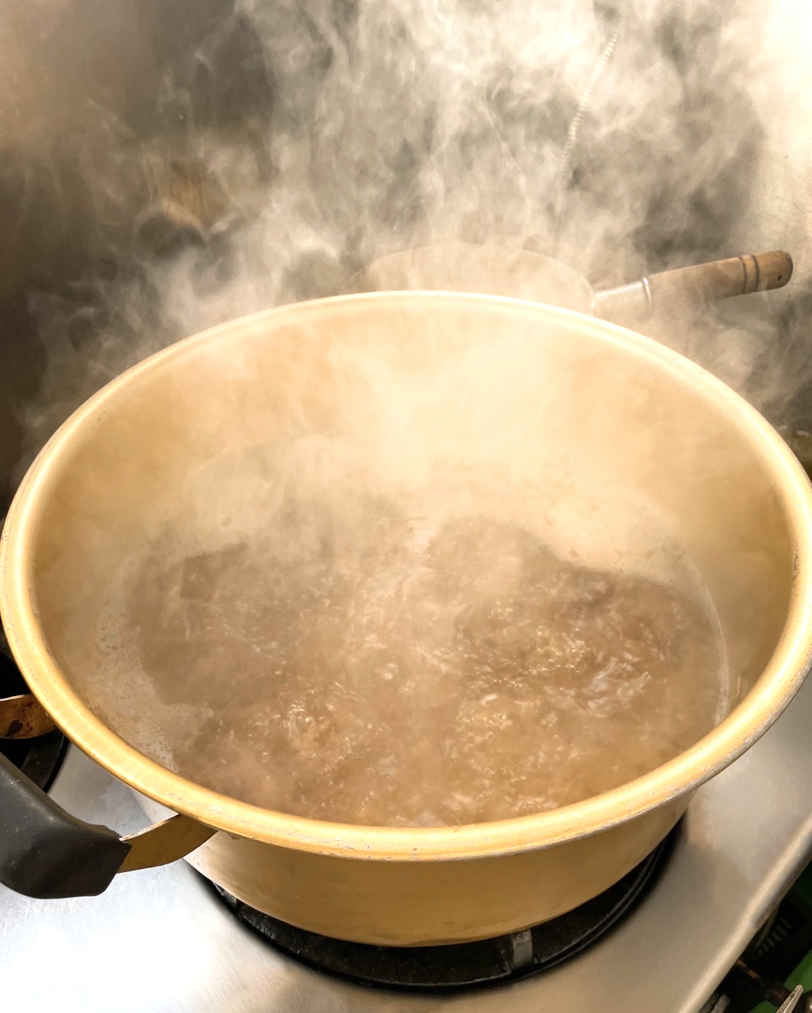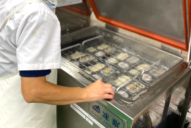 沸騰したお湯に冷凍の袋のまま、盛付面を上にして入れます。中火で約20分加熱して下さい