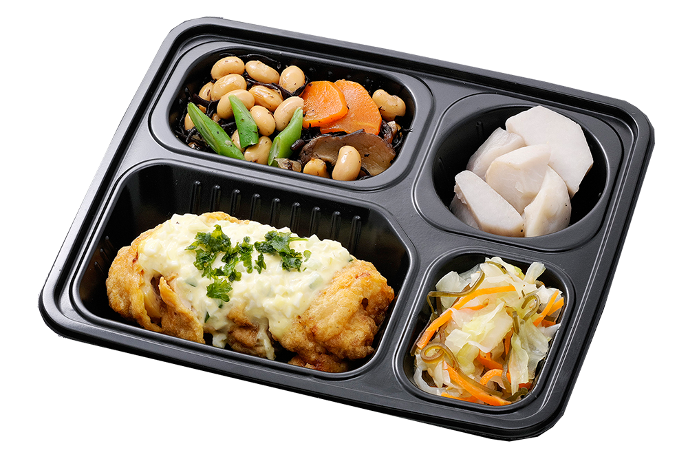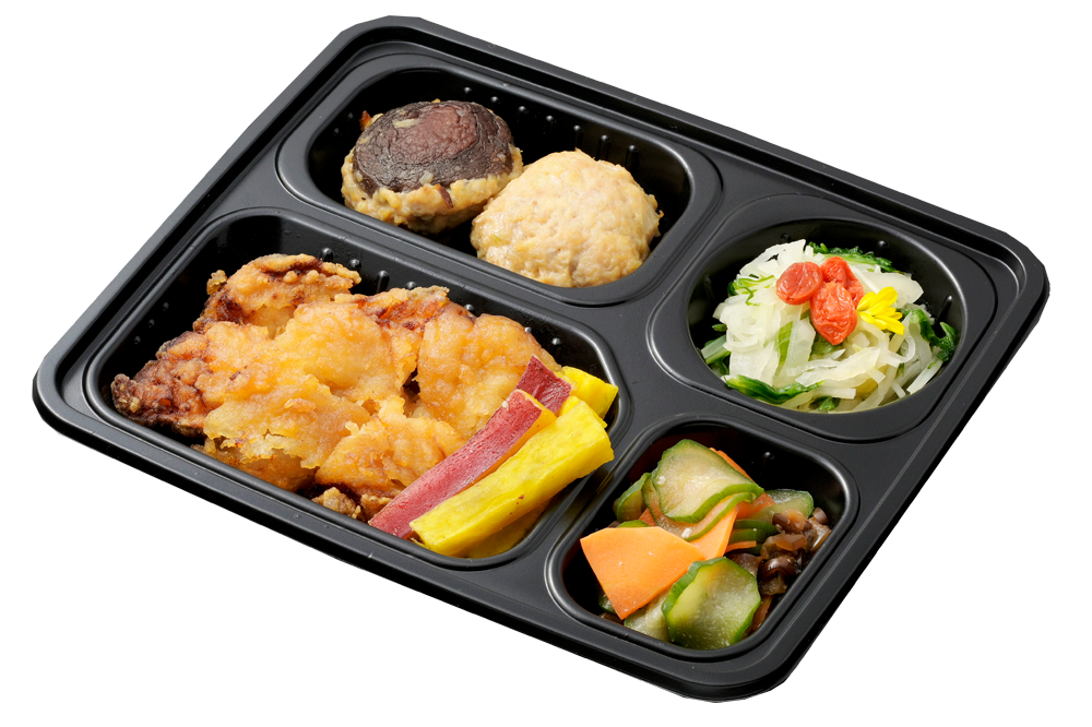 | 原材料 | 鶏もも肉、里芋、大豆、ひじき、キャベツ、人参、いんげん、油揚げ、塩昆布、ごま玉ねぎ、マヨネーズ、小麦粉、卵、パセリ、植物油、醤油、砂糖、鰹節、昆布、塩、胡椒 |