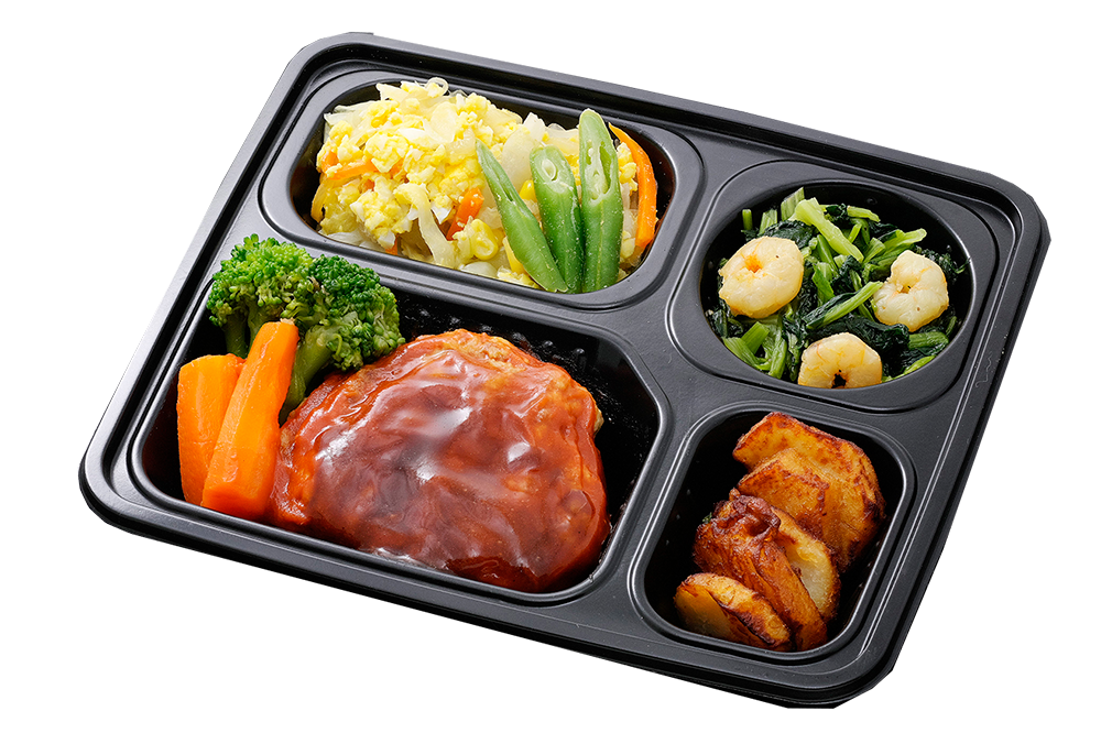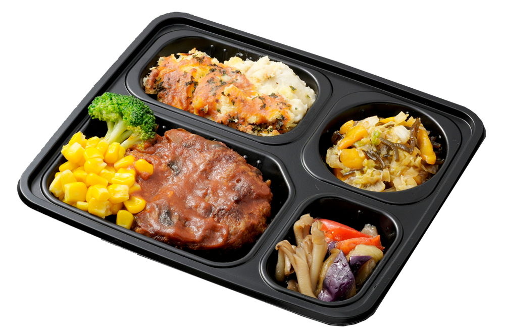 | 原材料 | 牛・豚ひき肉、大根、黒はんぺん、さつま芋、ひじき、昆布、人参、油揚げ、いんげん、ごま植物油、ケチャップ、ソース、赤ワイン、砂糖、醤油、バター、塩、鰹節 |